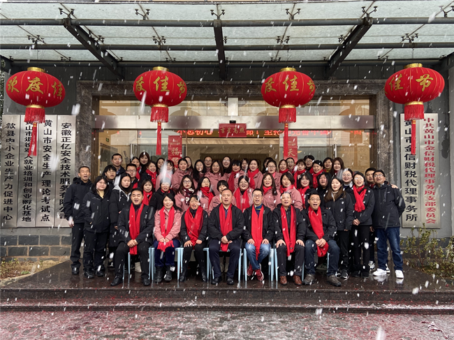 在熱鬧的新年禮炮和爆竹聲中,全體員工齊聚公司大門口來了一張“全家?!?,公司總經(jīng)理胡海鋒、副總經(jīng)理汪銘及各部門經(jīng)理、員工代表給大家拜年,送去溫馨的祝福和美好的愿望,為新的一年鼓勁加油!