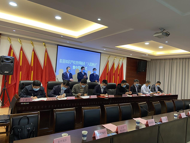4月20日至26日是全國知識產(chǎn)權宣傳周,今年活動的主題是:全面開啟知識產(chǎn)權強國建設新征程。4月21日,歙縣市場監(jiān)管局聯(lián)合歙縣經(jīng)濟開發(fā)區(qū)在歙縣招商投資服務中心召開歙縣首場知識產(chǎn)權質(zhì)押融資“ 入園惠企”銀企對接會。市市場監(jiān)管局副局長黃劍、縣市場監(jiān)管局局長江志偉、縣經(jīng)濟開發(fā)區(qū)管委副主任潘利青、縣銀保監(jiān)組主任吳志捷出席會議。歙縣50家高新技術企業(yè),市、縣8家金融機構(gòu)和資產(chǎn)評估、保險和知識產(chǎn)權代理等機構(gòu)共同參加此次活動。